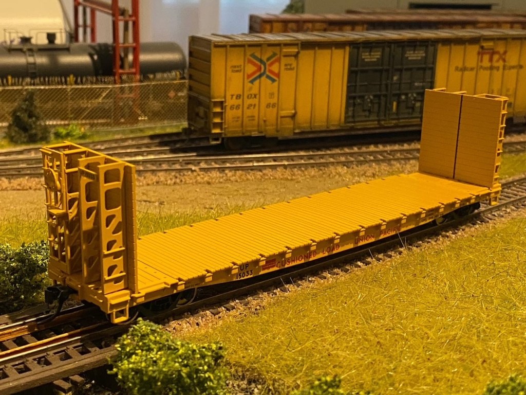 auch wieder so ein Wagen aus dem Internet… Basis diente mir ein Bulkhead von Union Pacific, welche ich sehr günstig auf einer Modellbahnbörse kaufen konnte. Die Stirnwände wurden entfernt und neue Wände erstellt. Zusammen mit einem Holzboden bekommt der Wagen einen völlig anderen Look. Nach der farblichen Behandlung und dem Setzen der Decals entstand etwas sehr schönes und einmaliges.
