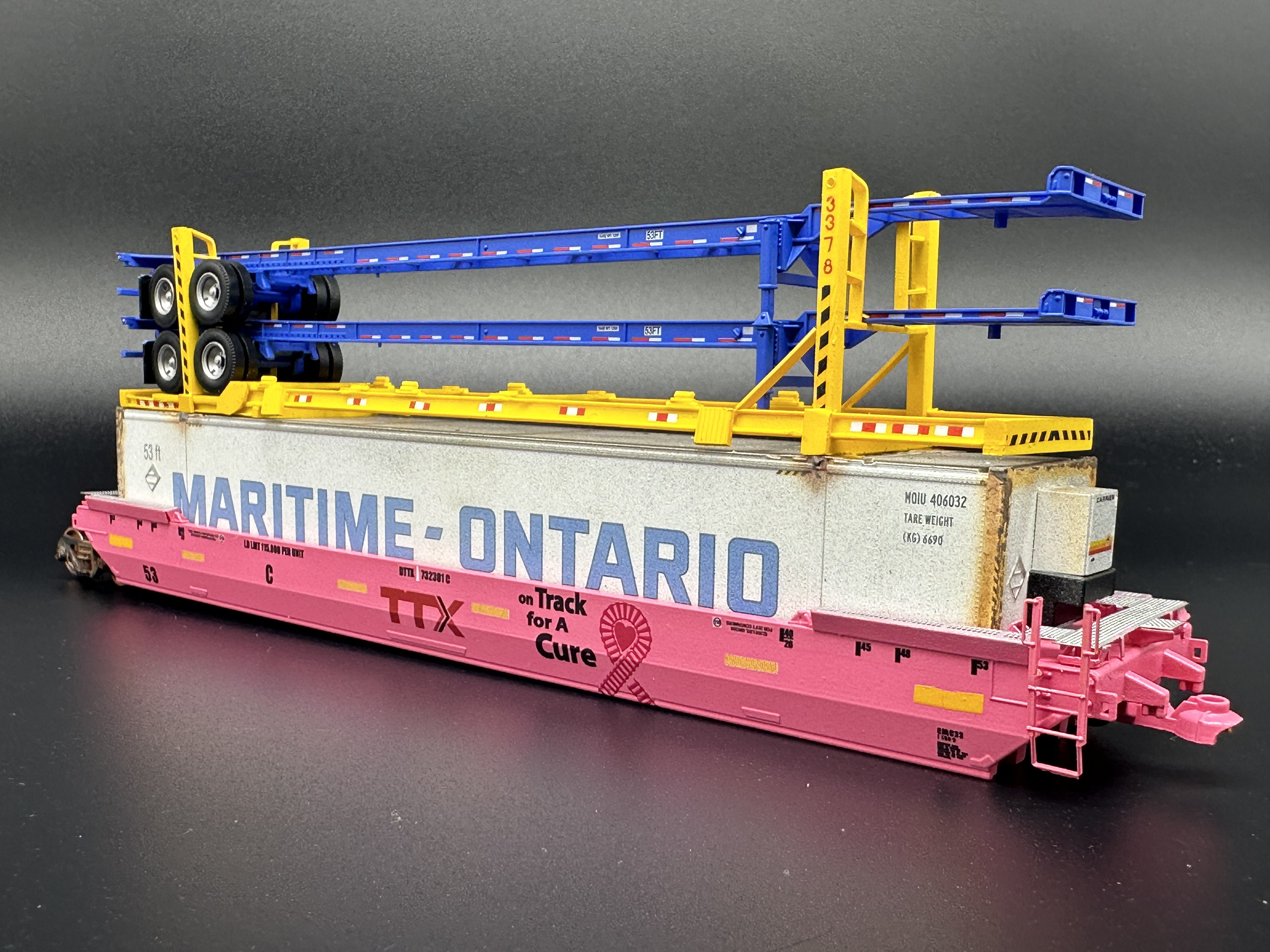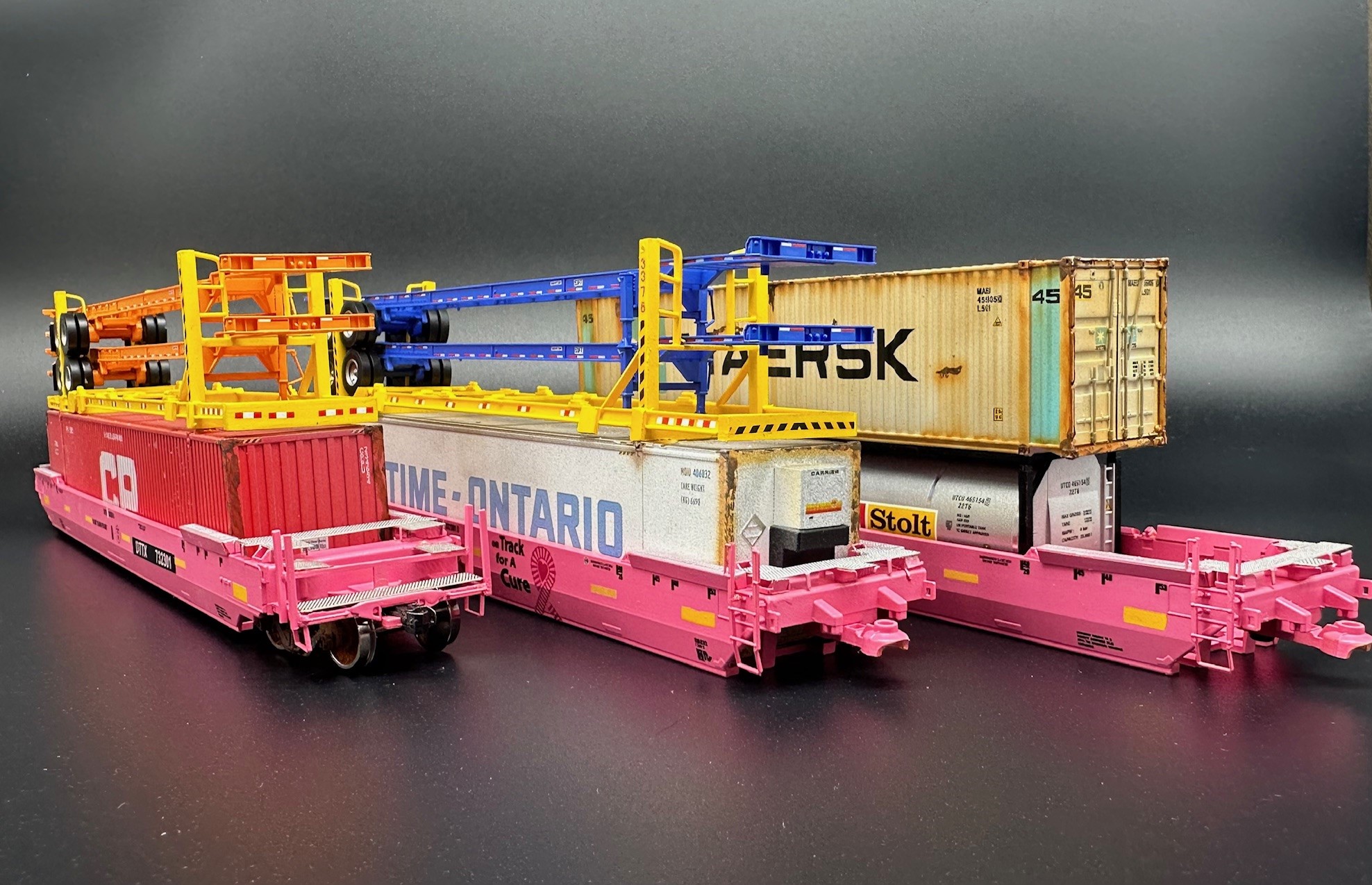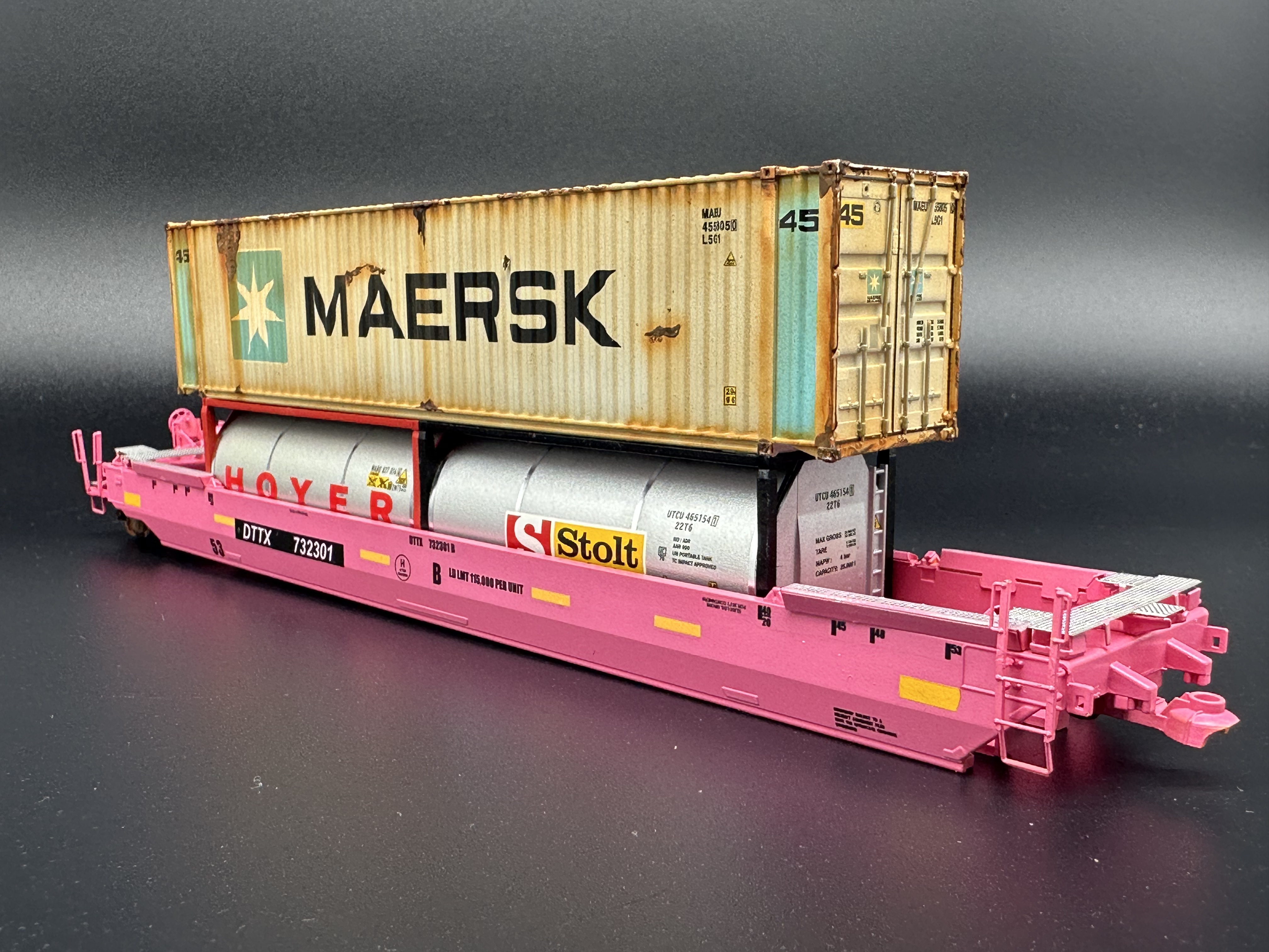 Als Basis wurde eine Maxi IV Container-Einheit von Kato genommen. Die Decals wurden von Microscale genommen.