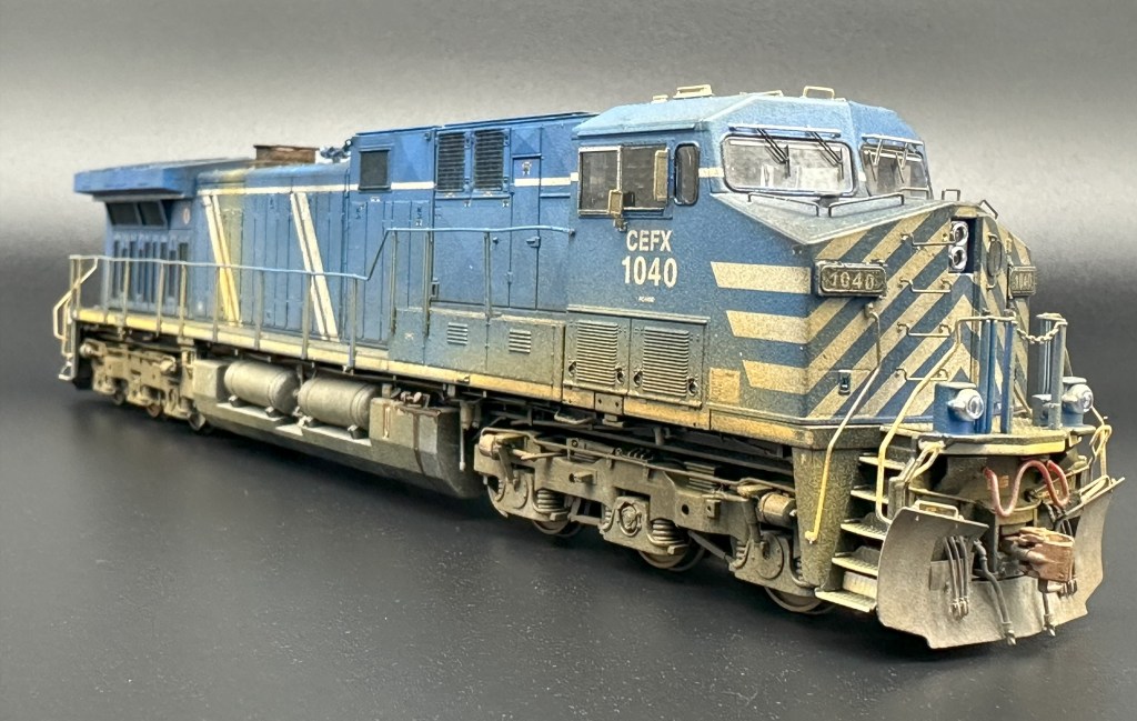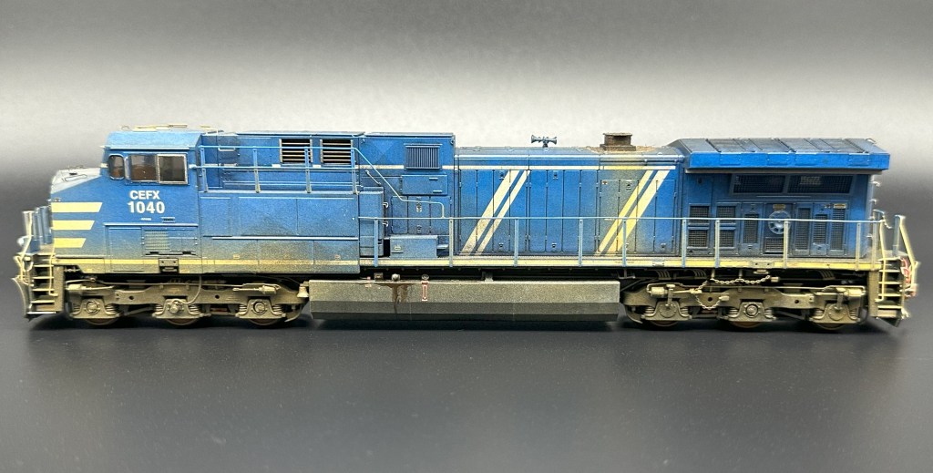 Diese Beauty entstand von einer scaletrains.com AC4400CW. Die Umnummerierung erfolgte mit Decals von Circus City Decals. Das Weathering erfolgte mittels AK und Tamiya Farben.