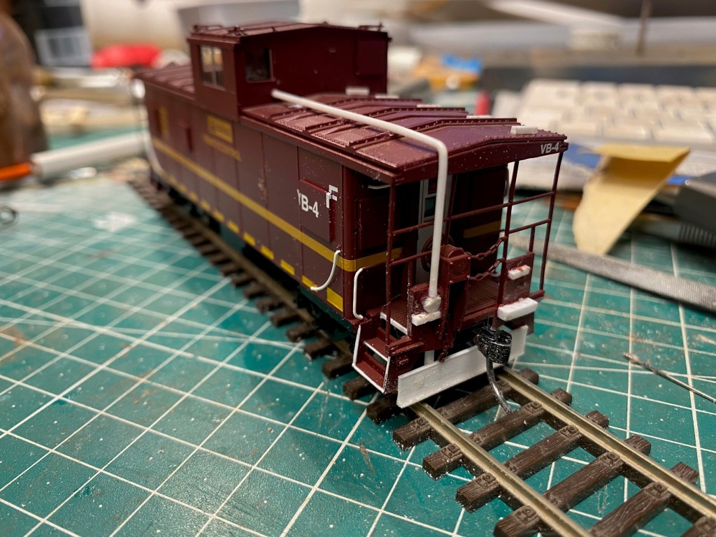 Zurück zum Wagen: MMA besass mehrer Remote Control Caboose von welchem aus die Loks gesteuert werden konnte. Aus einem Atlas Caboose und Polystyrene-Profile entstand nun dieses entsprechende Schmuckstück. Passt zwar nicht in meine Sammlung, aber wer weiss, an Umsetzungsideen fehlt es nicht.